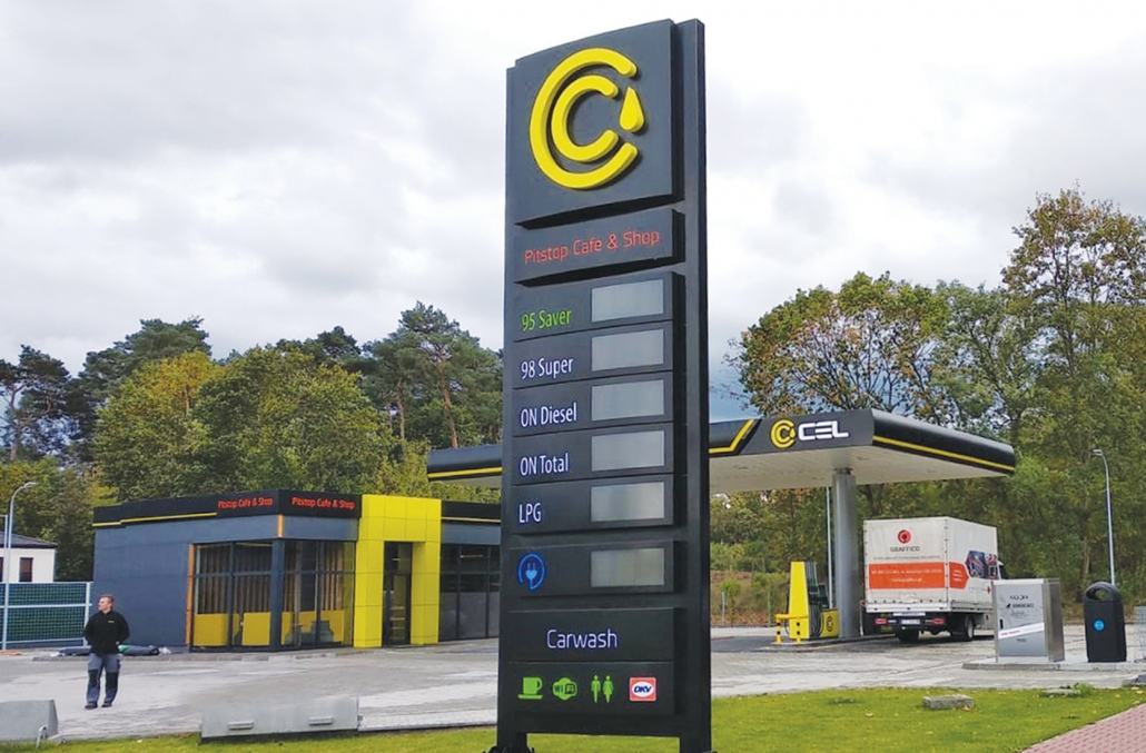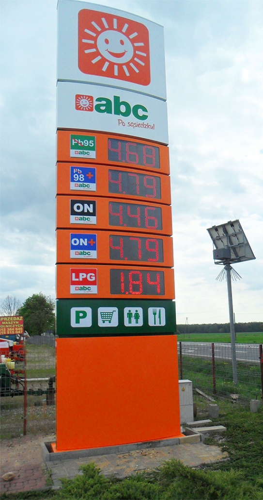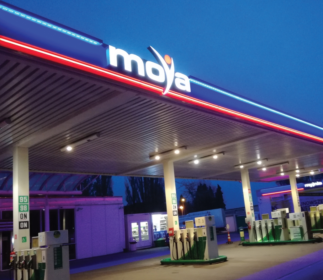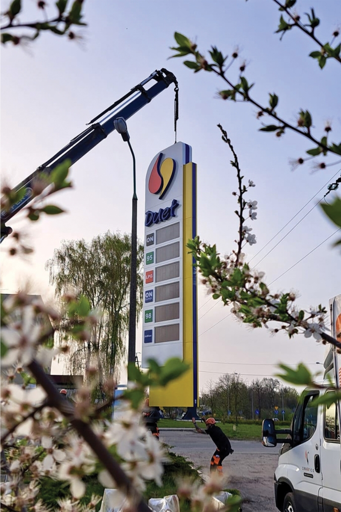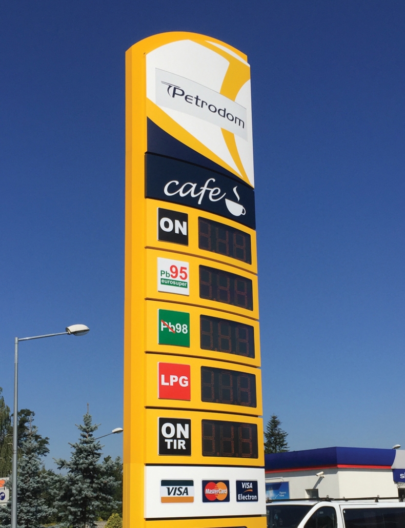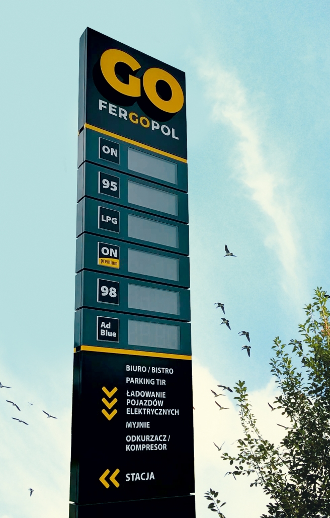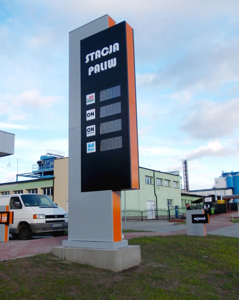 - Oznakowanie stacji paliw – elewacje, zadaszenia, dystrybutory, tablice informacyjne, systemy LED.