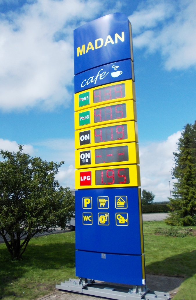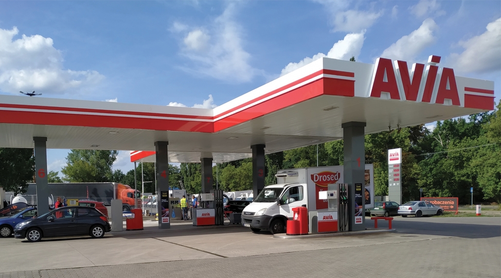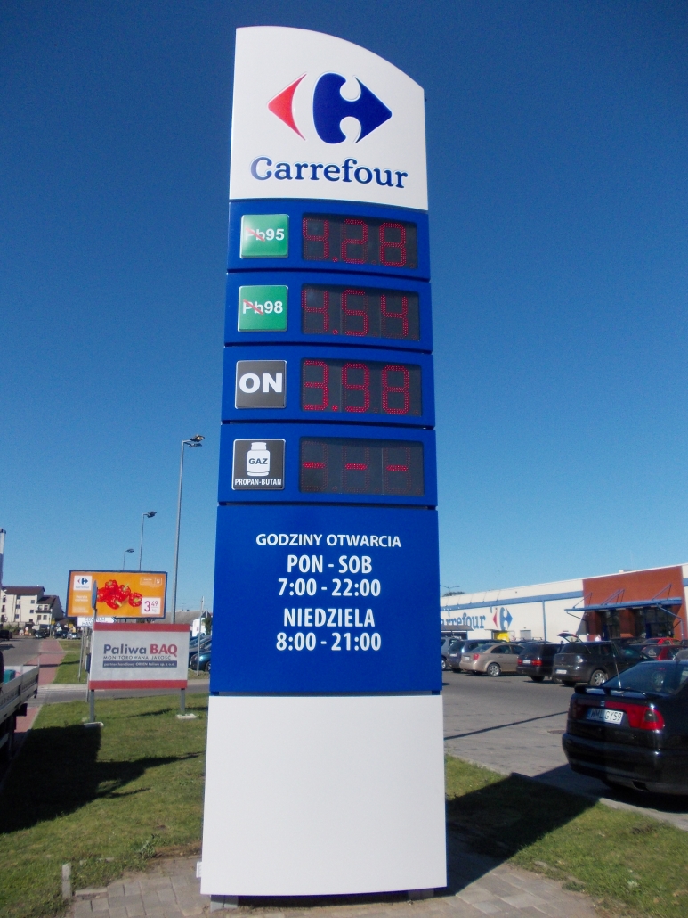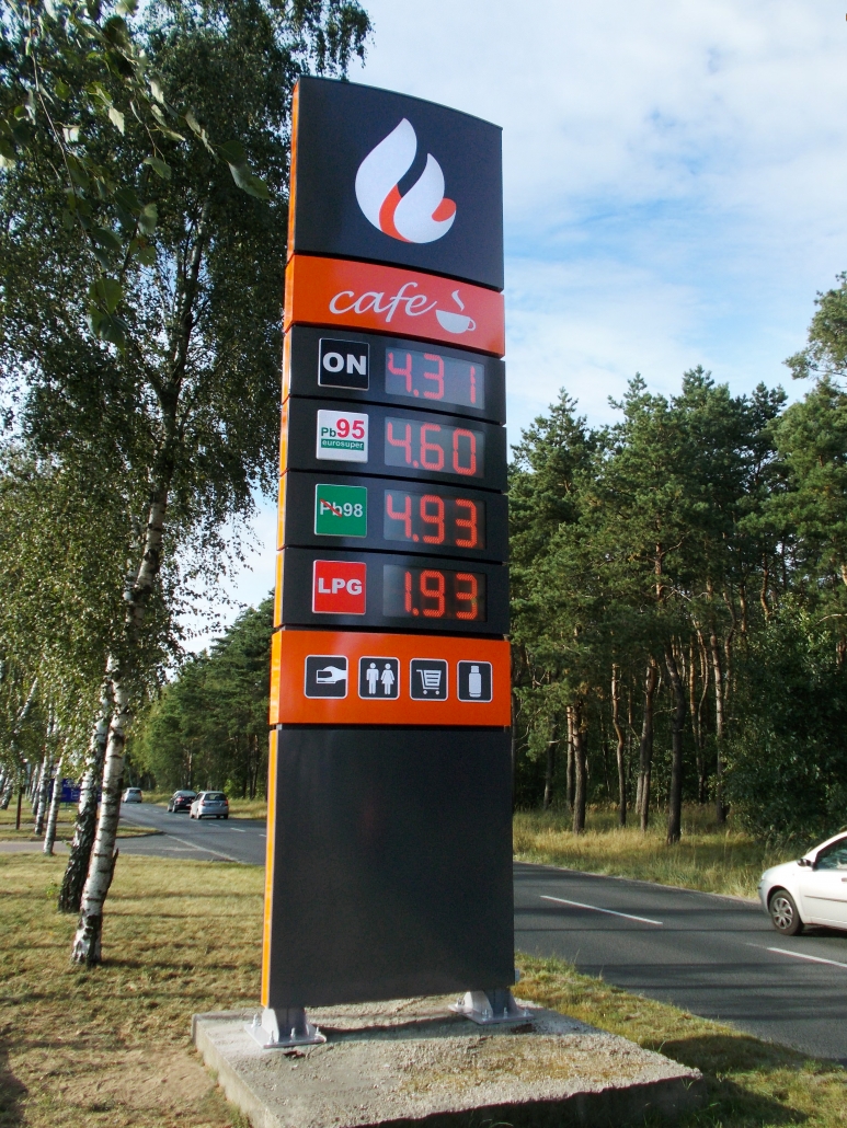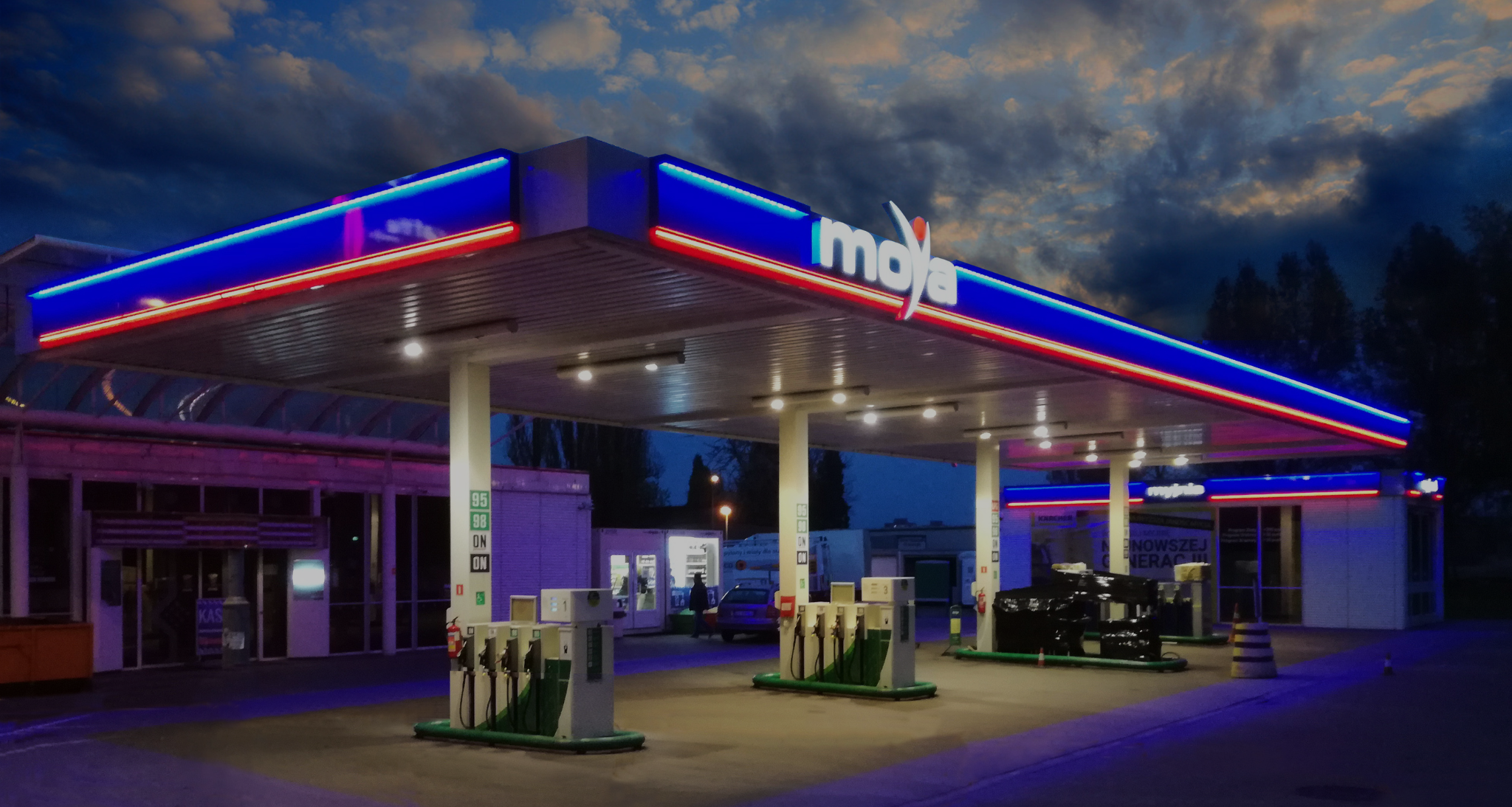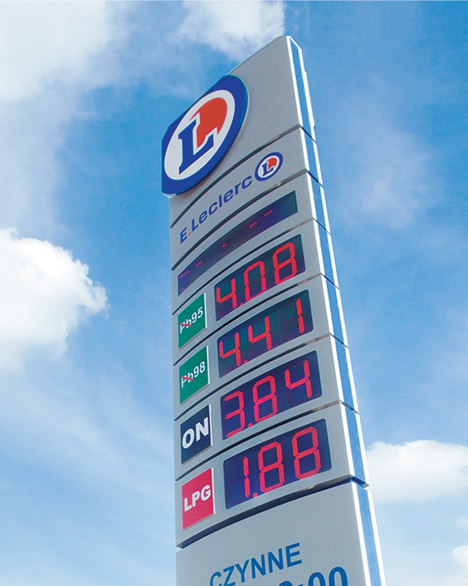 - Oznakowanie stacji paliw – elewacje, zadaszenia, dystrybutory, tablice informacyjne, systemy LED.