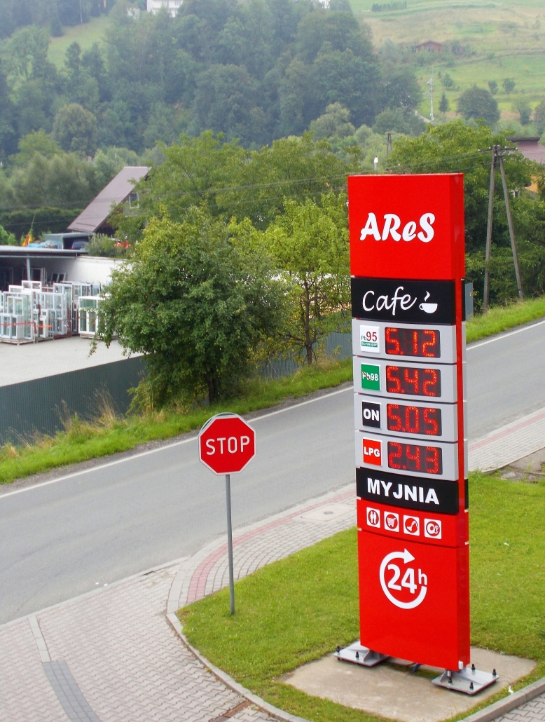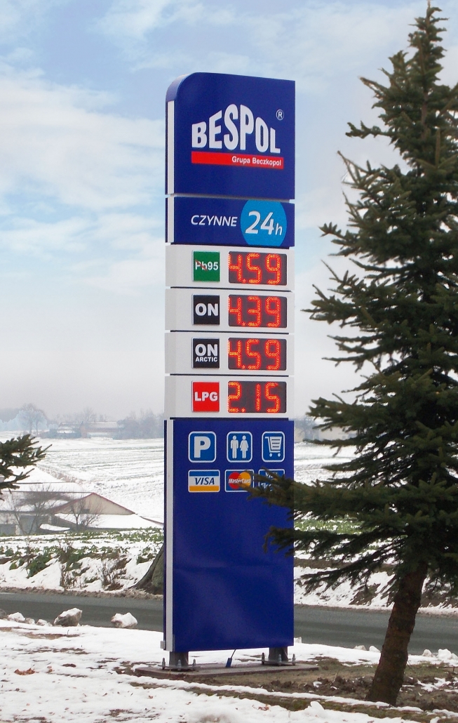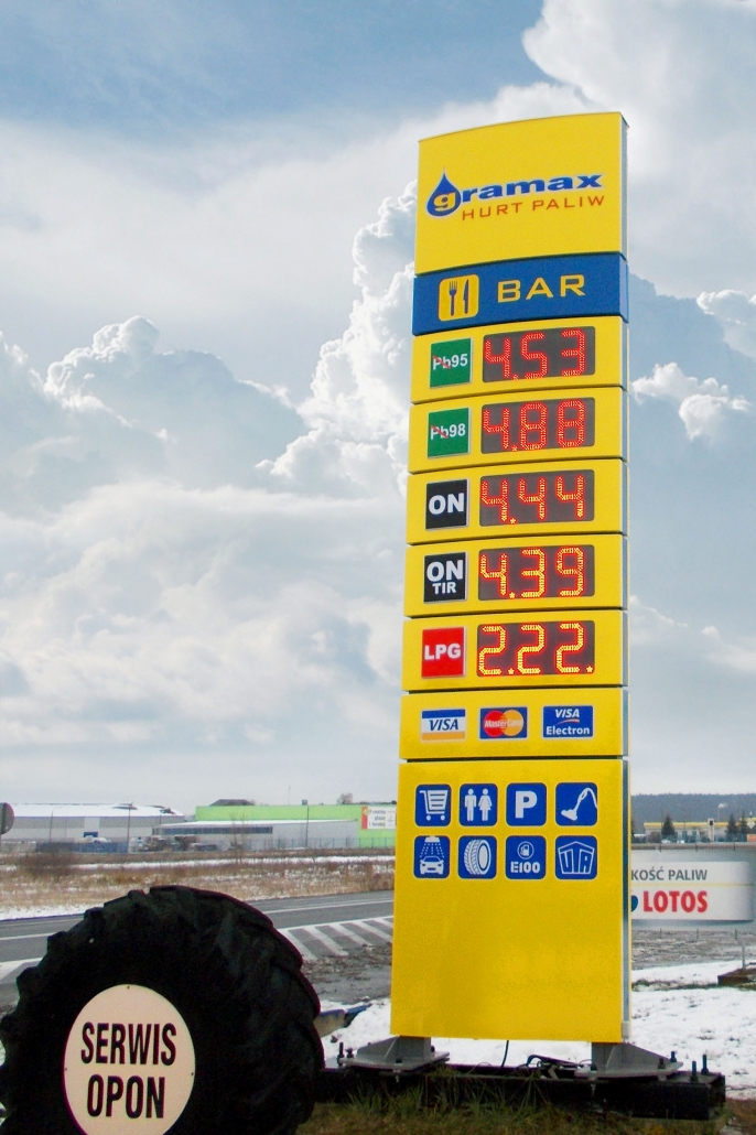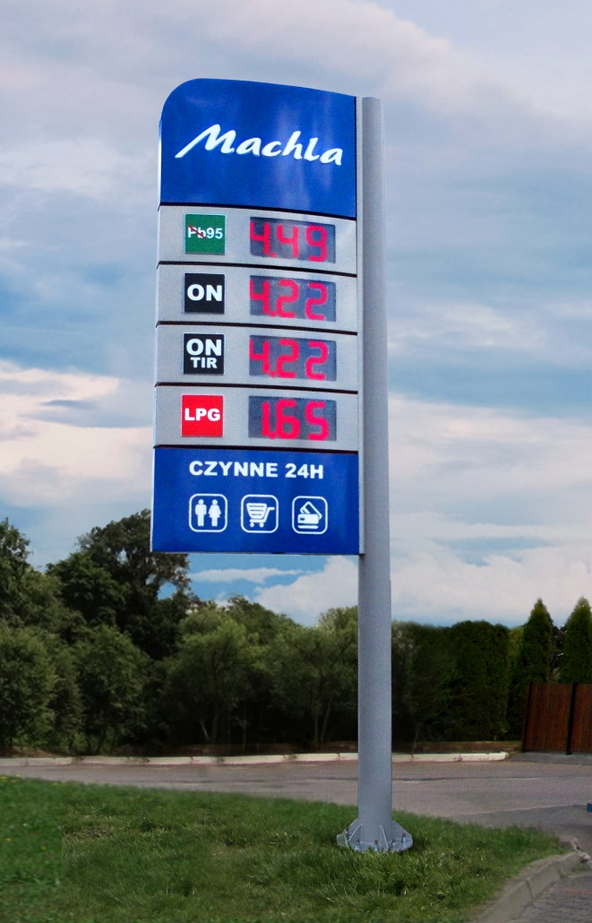 - Pylony cenowe i witacze – zaprojektowane z myślą o maksymalnej widoczności, trwałości i bezpieczeństwie.